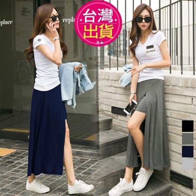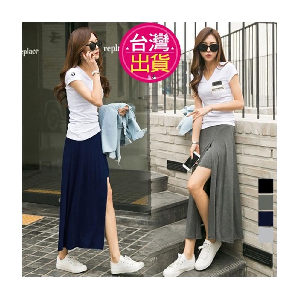 莫代爾開叉高腰長裙 褲裙 大擺裙 A字裙 半身裙 /JM Shop假兩件褲裙