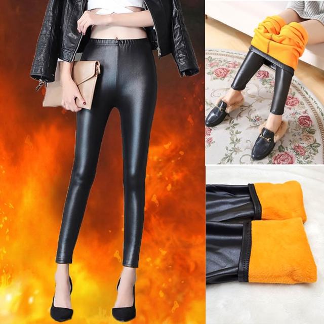 超保暖 高腰加絨皮褲 PU仿皮顯瘦加厚九分褲 小腳褲 刷毛長褲 緊身褲 /JM Shop加絨皮褲