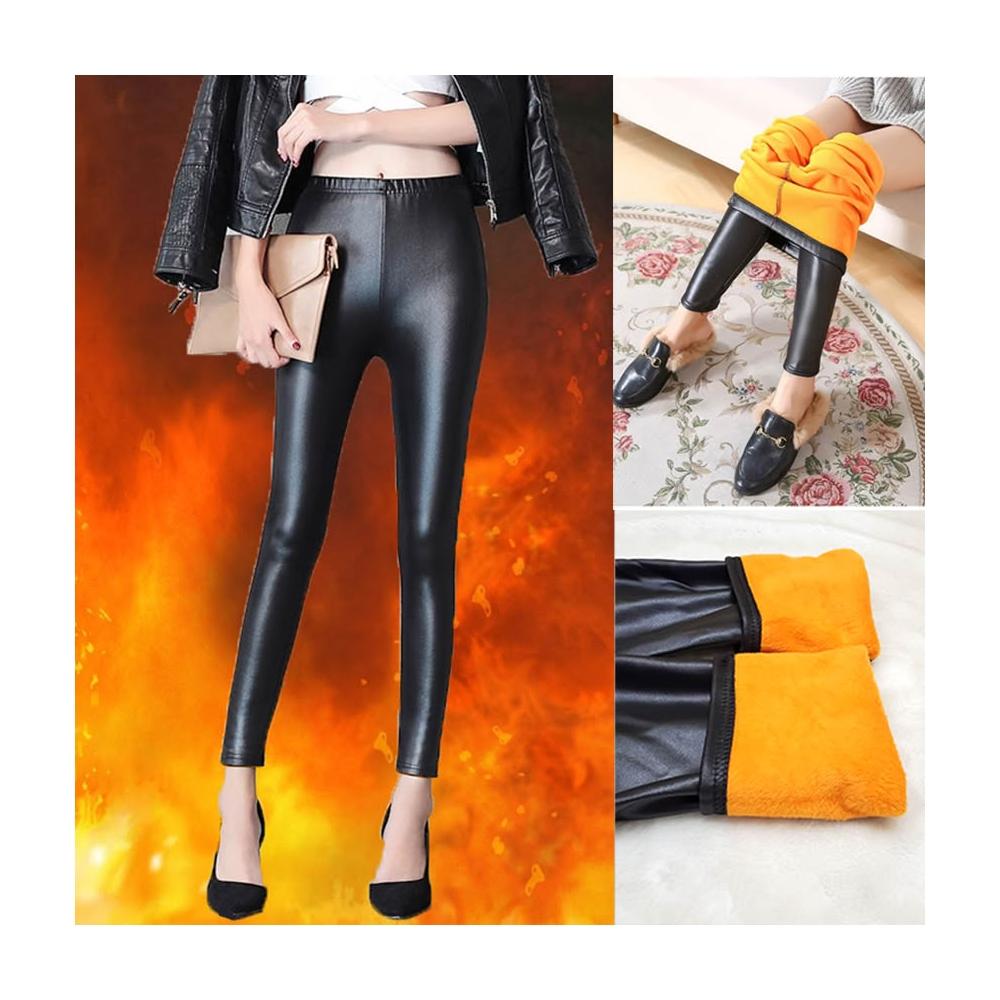 超保暖 高腰加絨皮褲 PU仿皮顯瘦加厚九分褲 小腳褲 刷毛長褲 緊身褲 /JM Shop加絨皮褲