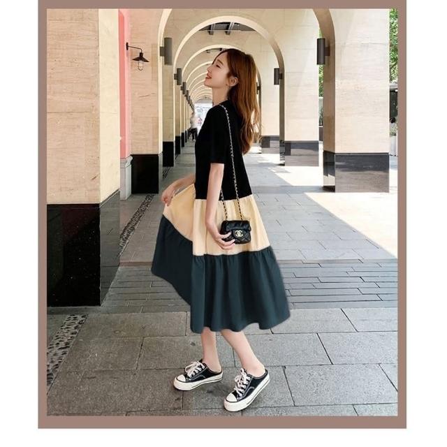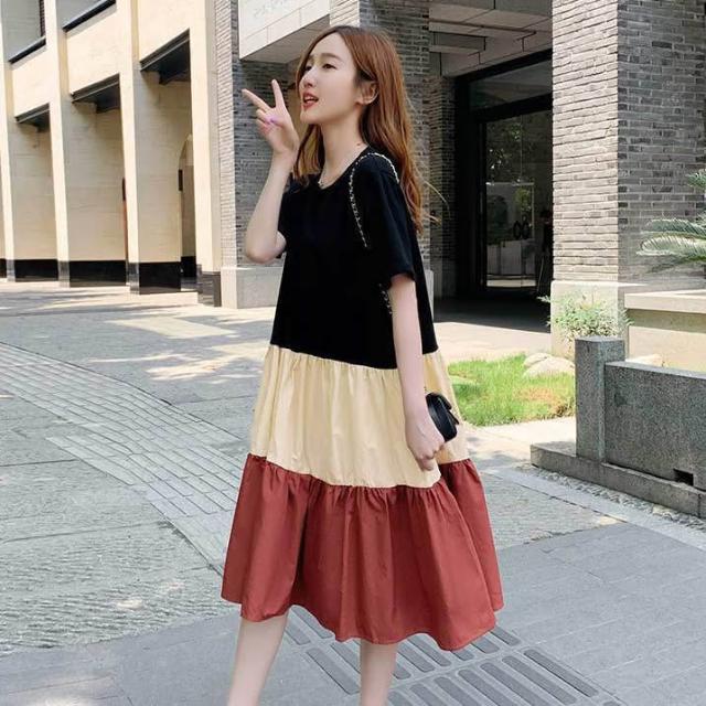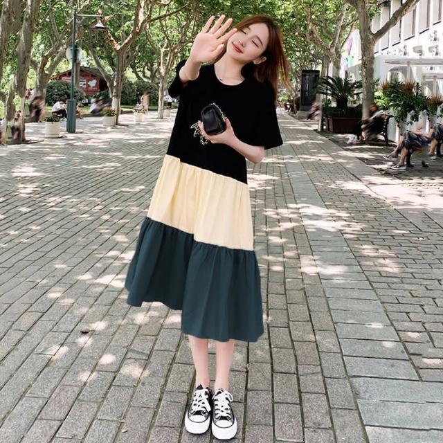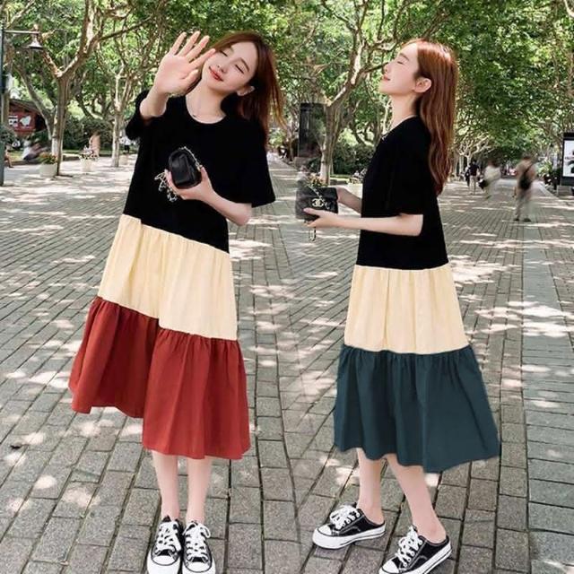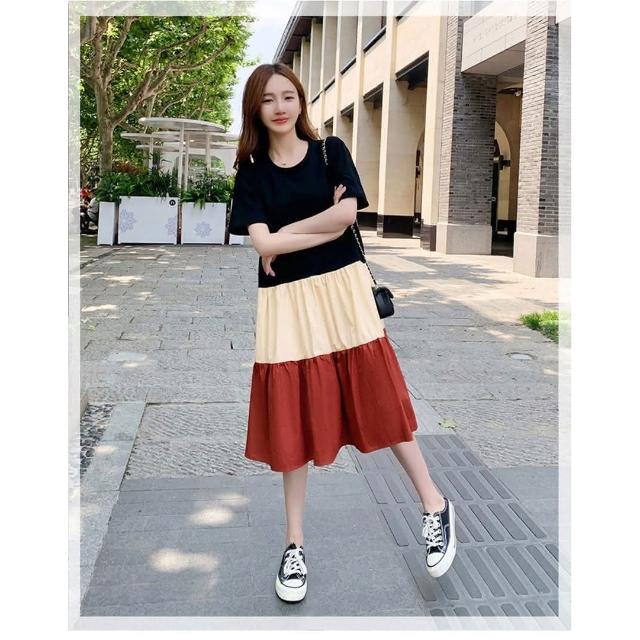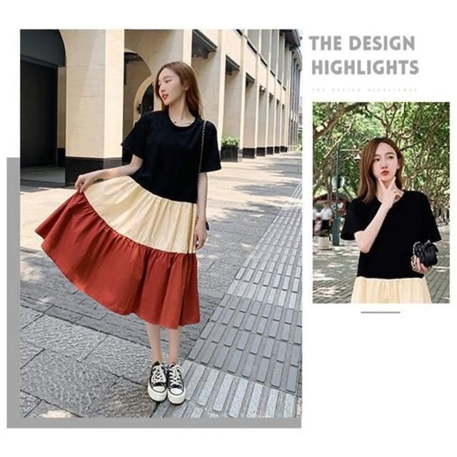 寬鬆撞色短袖連身裙 孕婦裝 娃娃裙 洋裝 娃娃裝/JM Shop娃娃裝