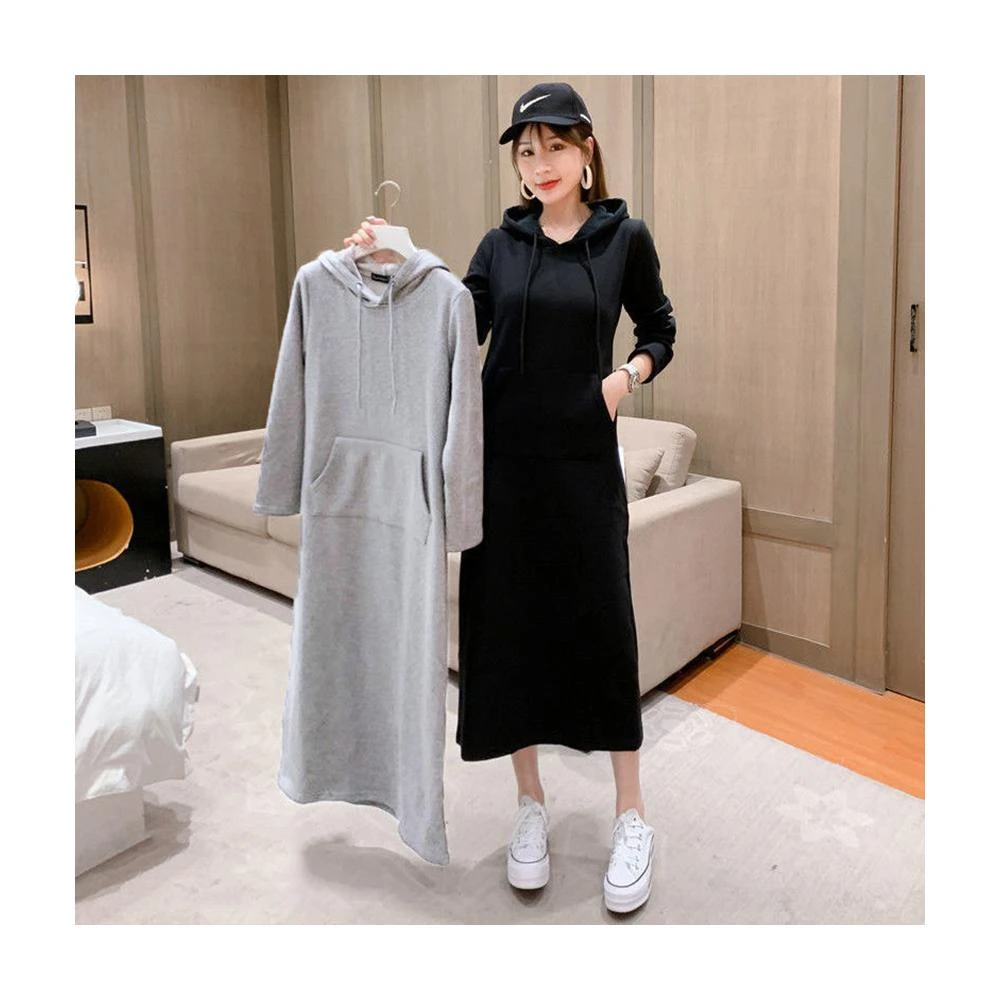 氣質顯瘦長袖包臀連帽連身裙 長版薄款/加絨刷毛衛衣 帽T /JM Shop連身裙