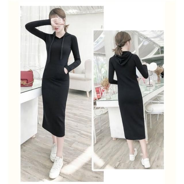 氣質顯瘦長袖包臀連帽連身裙 長版薄款/加絨刷毛衛衣 帽T /JM Shop連身裙
