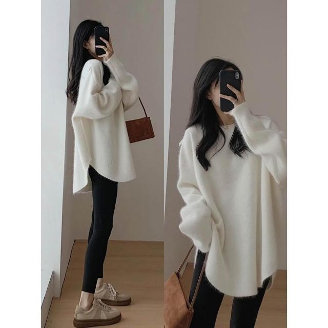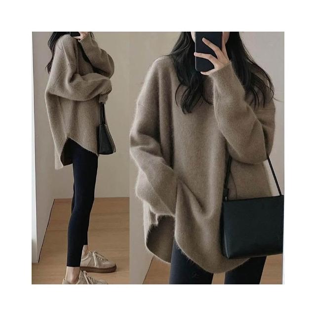 慵懶風中長版長袖圓領針織衫毛衣 /JM Shop
