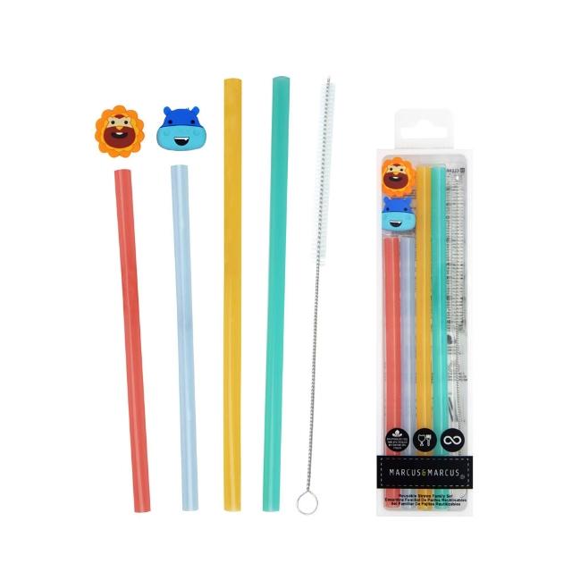 MARCUS&MARCUS動物樂園親子家庭吸管套組|矽膠吸管(附清潔刷) 麗兒采家