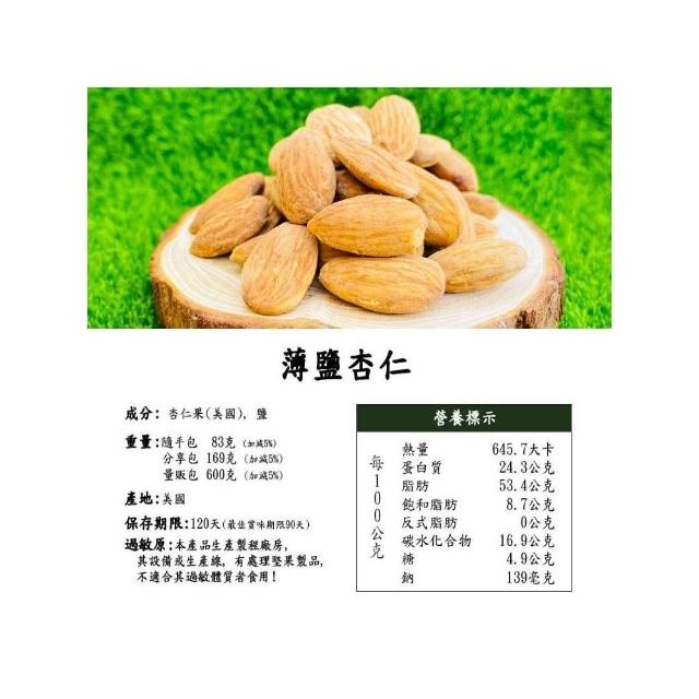 低溫烘焙,薄鹽輕調味非油炸杏仁