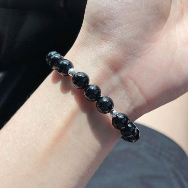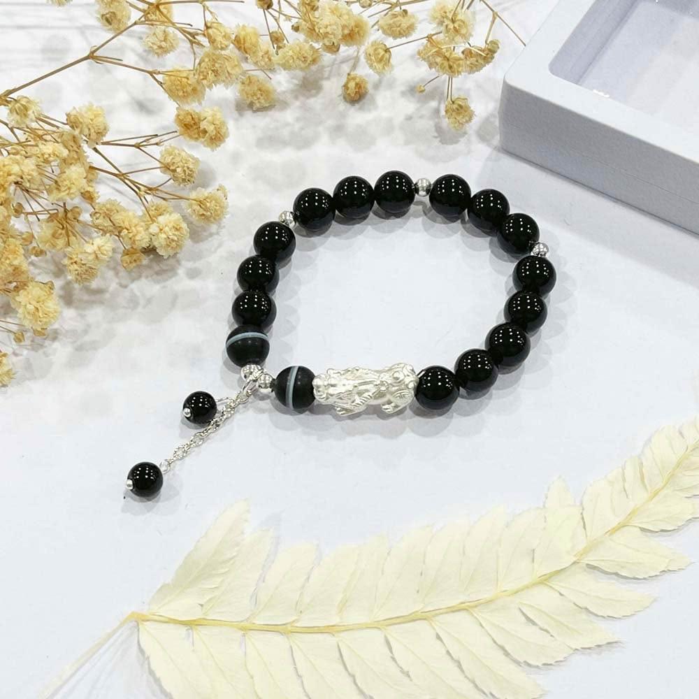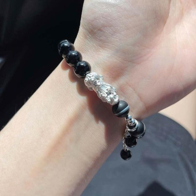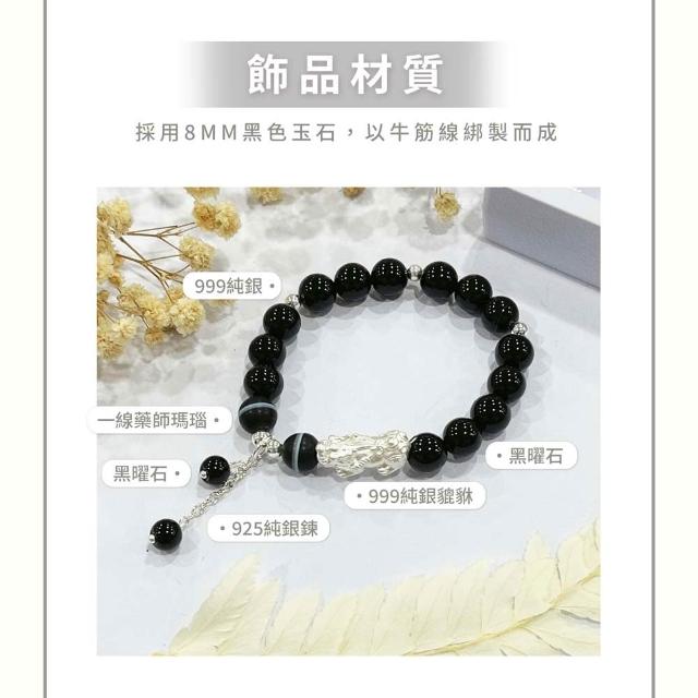 山水之寶 黑曜石手鍊 水晶手鍊 極光系列 薄霧黑 999純銀貔貅 黑曜石 一線天珠 手珠 手飾 飾品 手串 玉石