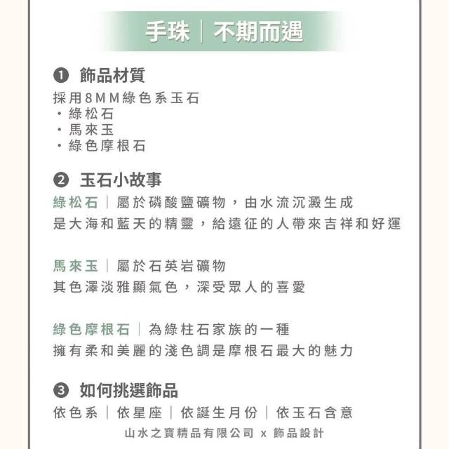 山水之寶 水晶手鍊 手繩手鍊 邂逅系列 不期而遇 綠松石 馬來玉 綠色摩根石 999純銀 手珠 玉石手珠手飾飾品手串玉石