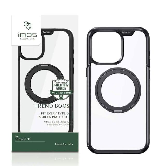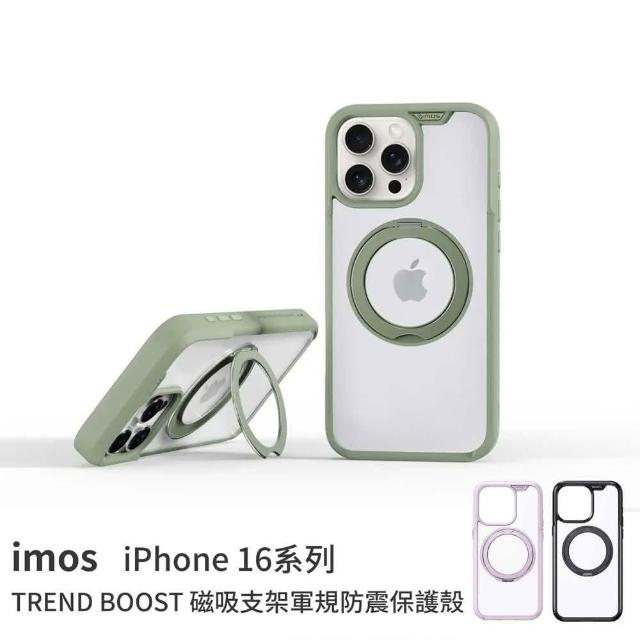 iMos16/16Pro/16Promax手機殼TREND BOOST磁吸支架軍規防震保護殼 附手機墊片+充電孔保護膜原廠公司貨