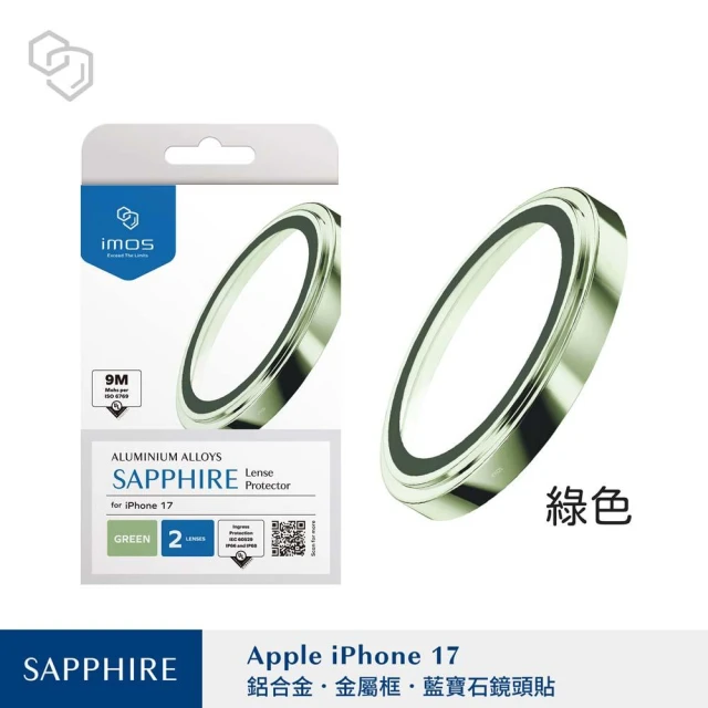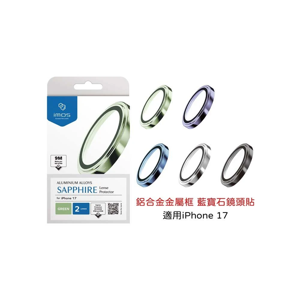 iMos山水之寶 iPhone 17(6.3吋)鏡頭貼 鋁合金金屬框 藍寶石玻璃鏡頭貼 防水防塵 9M藍寶石級防護 原廠公司貨