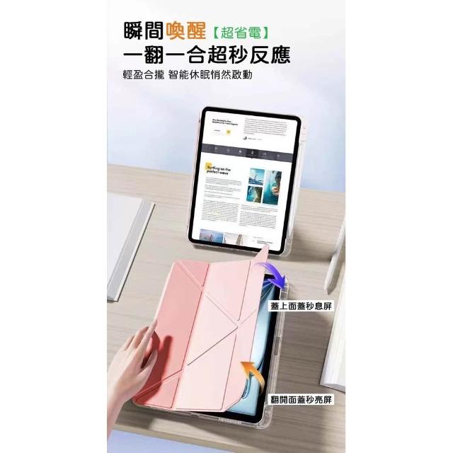 山水之寶紅米Redmi Pad SE (8.7吋)平板套 冰晶款三角折+Y折內置筆槽平板保護套 防摔防撞氣囊 壓克力背板防彎折