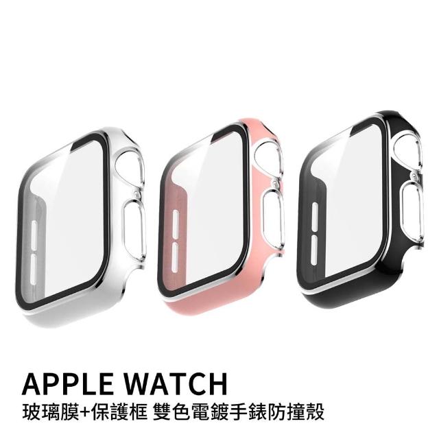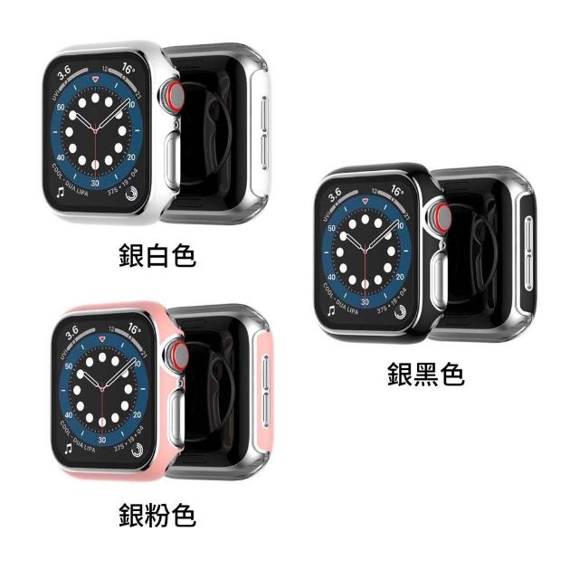 山水之寶 Apple Watch 4/5/6/SE1/SE2/SE3 44mm保護殼 玻璃膜+保護框 雙色電鍍手錶防撞殼