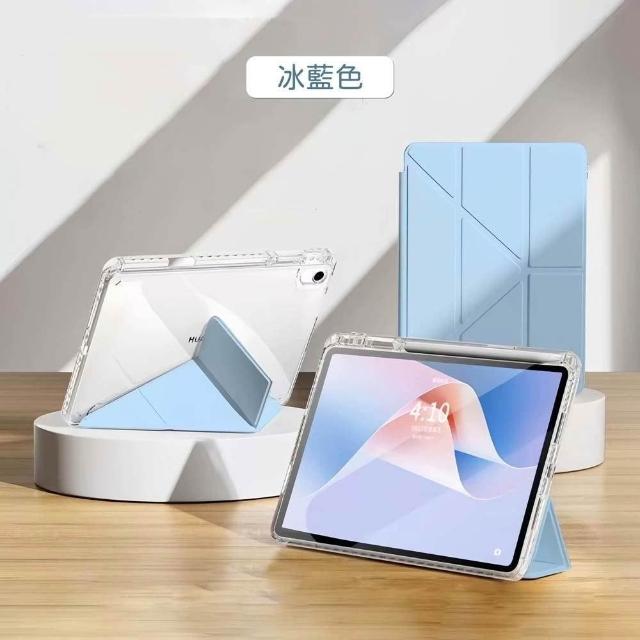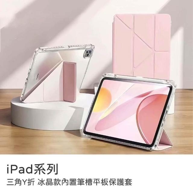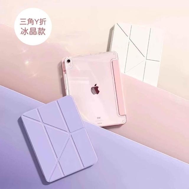 山水之寶iPad7/8/9代10.2吋Pro 1代/Air 3代10.5吋保護套 冰晶款三角折+Y折內置筆槽防撞氣囊平板保護套