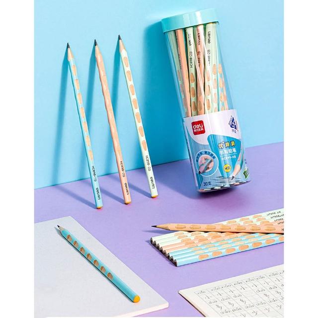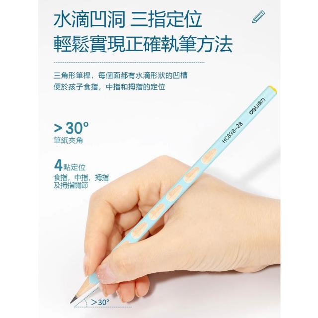 Deli 得力【得力】無毒洞洞 2B 三色鉛筆組(練習鉛筆 學齡鉛筆 矯正握筆姿式 學習文具用品)