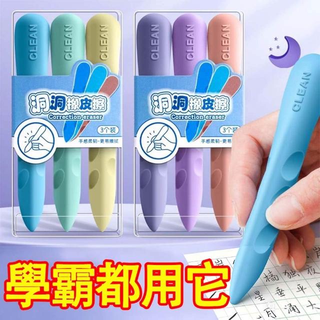 創意筆形洞洞橡皮擦(雙頭擦淨 矯正握姿 學生必備)