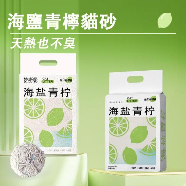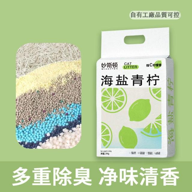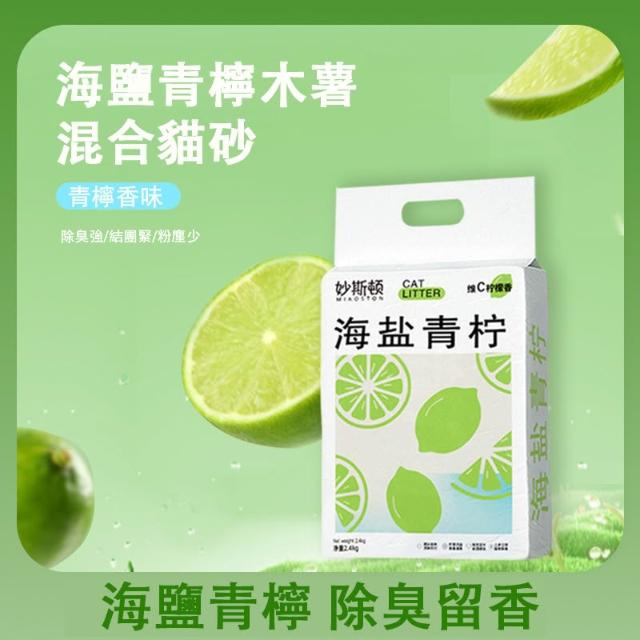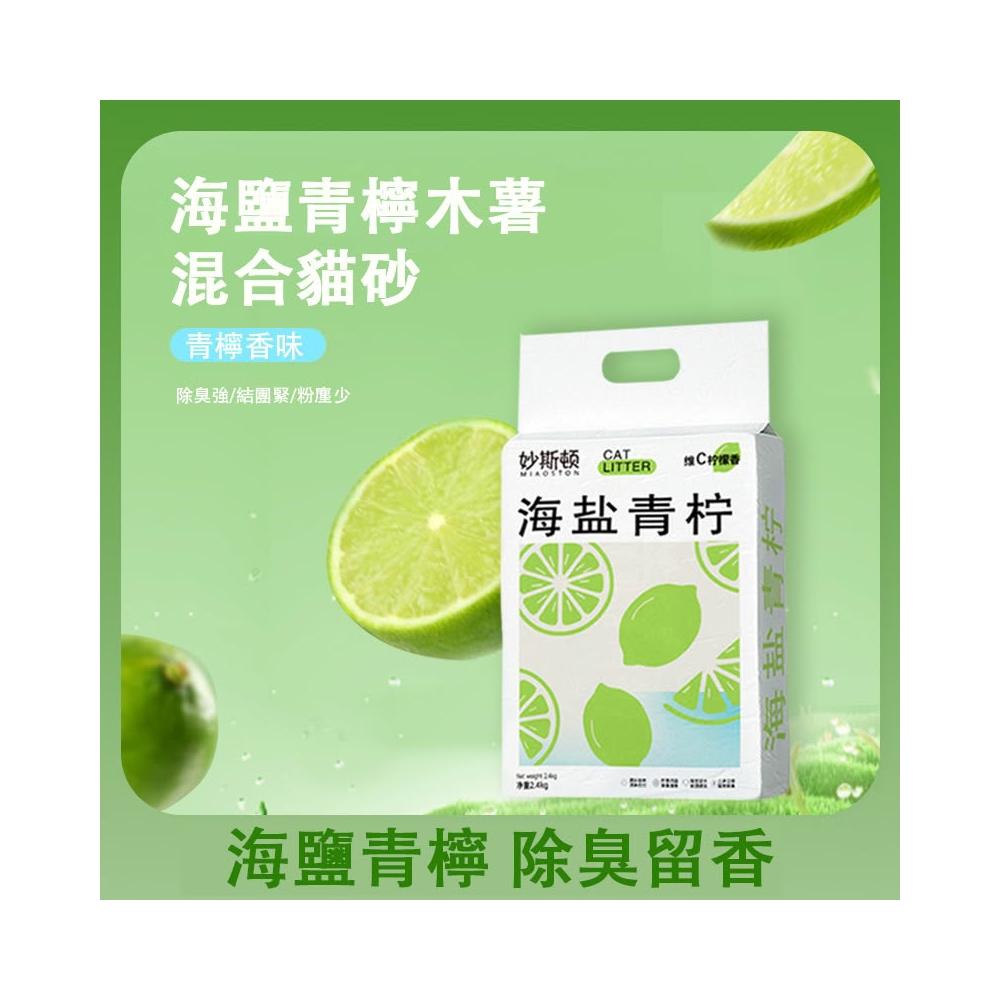 妙斯頓海鹽青檸香除臭結團木薯混合貓砂-2.4公斤(貓咪用品 貓砂 可沖廁所)