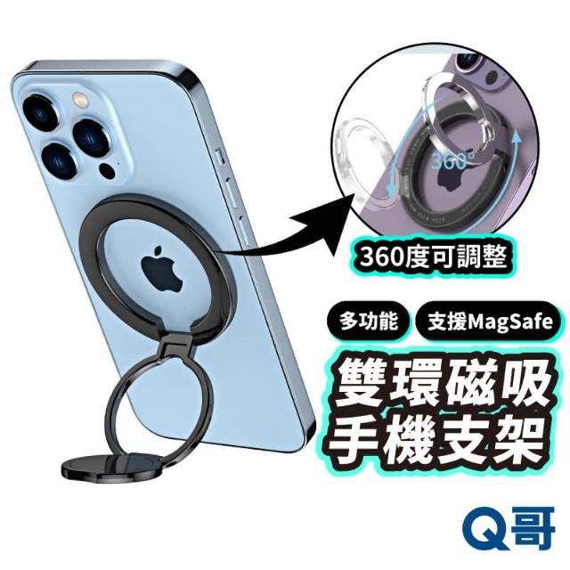 Q哥雙環磁吸指手機支架 指環扣 支援無線充電 磁吸手機支架 可調整支架 雙軸指環 多功能手機架 便携手機架 XU06(指環扣 手機支架 支援無線充電)
