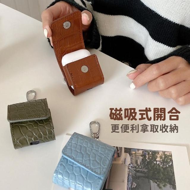 鱷魚皮紋耳機收納包 適用 AirPods pro 1 2 3 皮套 皮革 收納包 蘋果耳機 磁吸皮套 保護套 Z98