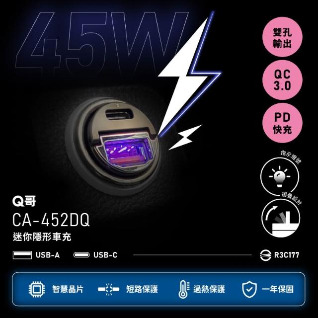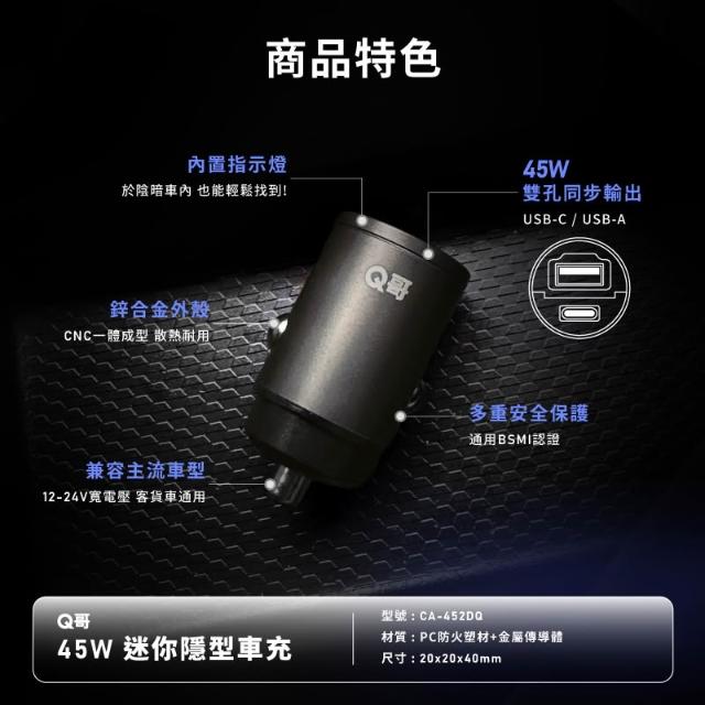 Q哥45W 迷你快充 車用充電器 PD快充 TypeC iPhone 16 車充 充電頭 快充頭 點煙器 C001