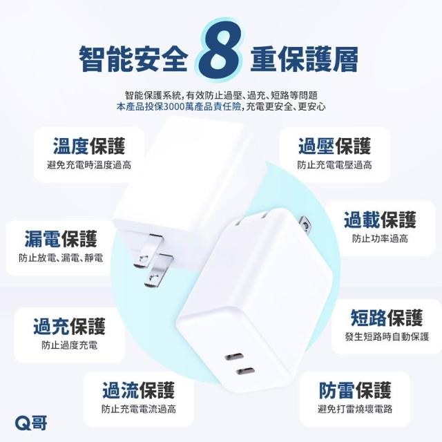 Q哥65W 氮化鎵 充電頭 雙孔 Type C 摺疊 PD快充 適用 iPhone 安卓 快充頭 充電器 B015
