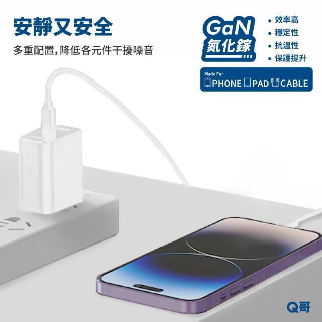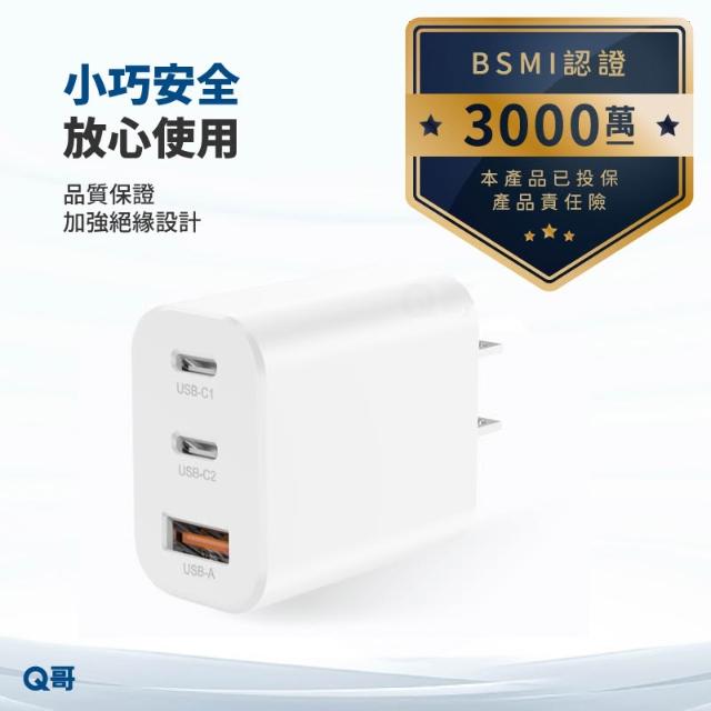 Q哥30W 氮化鎵 三孔PD快充頭 充電頭 充電器 豆腐頭 PD快充 TypeC USB-A 快充頭 B011