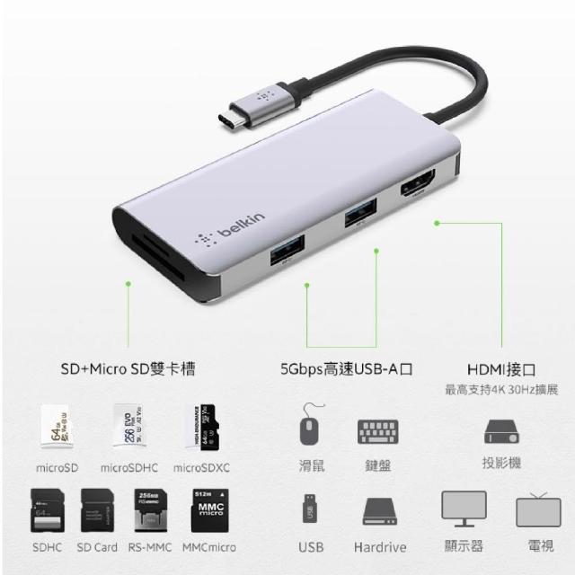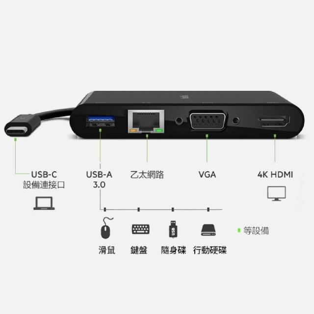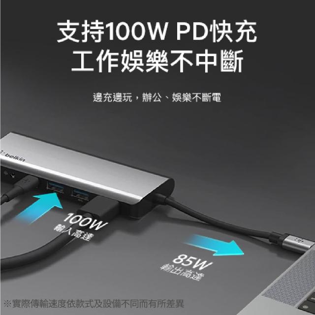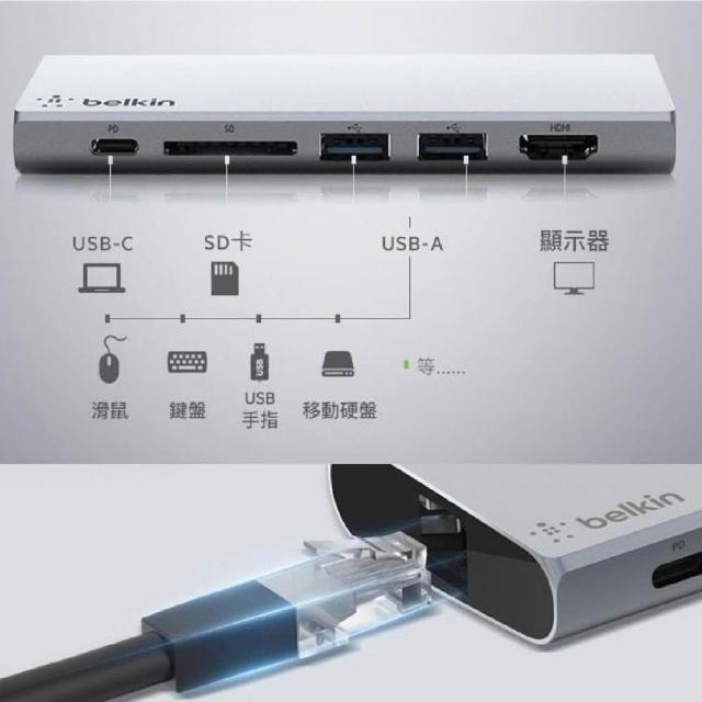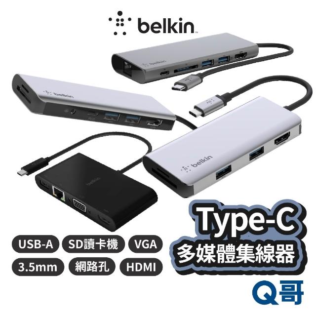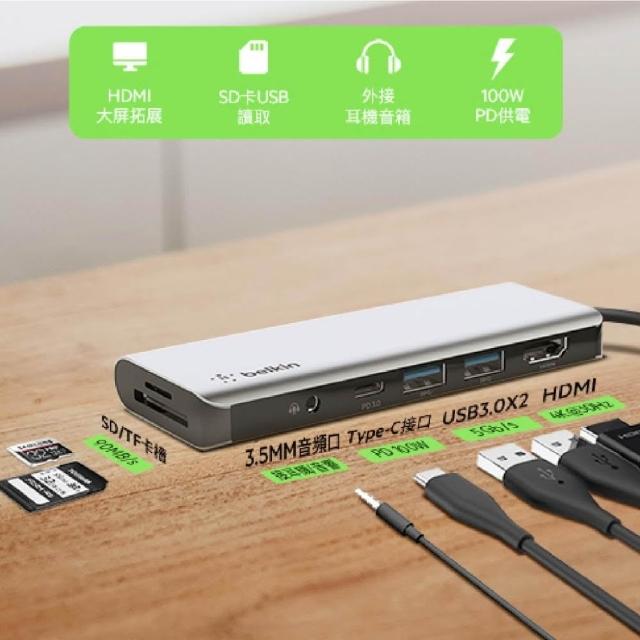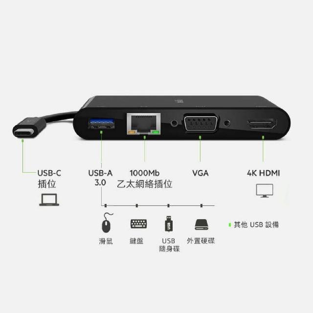 Belkin Type-C多媒體集線器 PD100W 轉接器 USB HDMI VGA 耳機孔 網路孔 SD BEL22