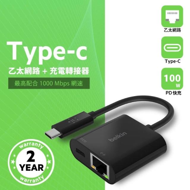 Belkin USB-C 轉 乙太網路 PD快充 100W 充電轉接器 轉接器 轉接頭 充電器 Type-C BEL29