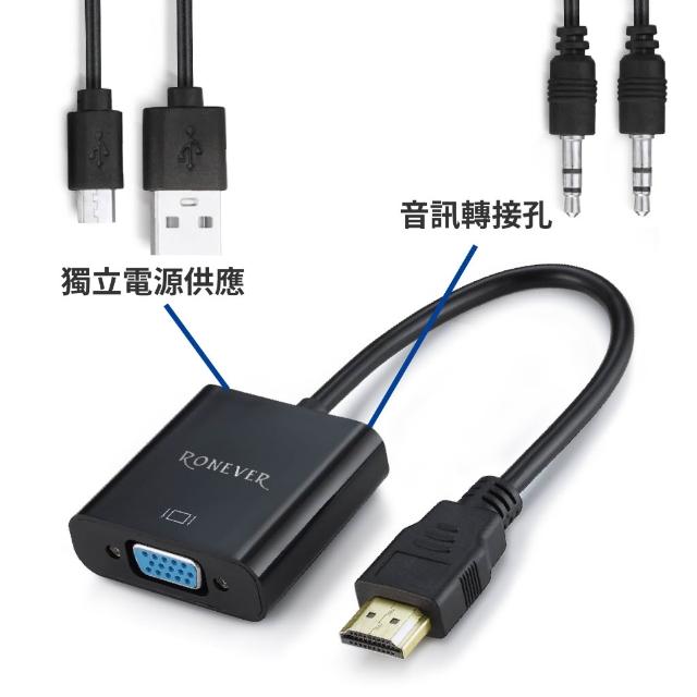 RONEVER 高清多媒體介面to VGA轉接器 HDMI 轉換線 轉接頭 3.5mm micro USB RV010