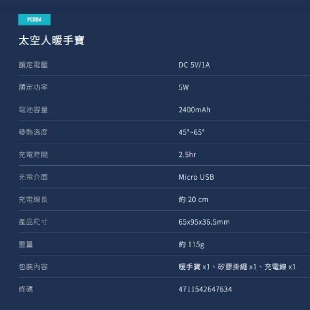 RONEVER 太空人暖手寶 充電式暖暖包 可調溫 電子暖暖包 恆溫 加熱暖暖包 手握式 usb暖手 RV030