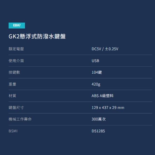 RONEVER KB047 GK2懸浮式防潑水鍵盤 USB 鍵盤 有線 鍵盤 繁體中文 注音 數字 RV045