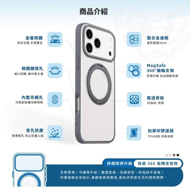 Q哥狼盾 360 終極防摔旋轉支架殼 適用 iPhone 17 16 Pro Max Air 磁吸殼 手機殼 S013