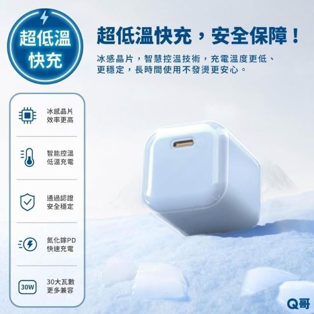 Q哥30W 繽紛小冰塊 氮化鎵 快充頭 TypeC USB-A 迷你 充電頭 PD快充 充電器 豆腐頭 B027