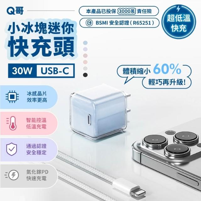 Q哥30W 繽紛小冰塊 氮化鎵 快充頭 TypeC USB-A 迷你 充電頭 PD快充 充電器 豆腐頭 B027