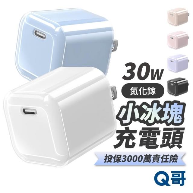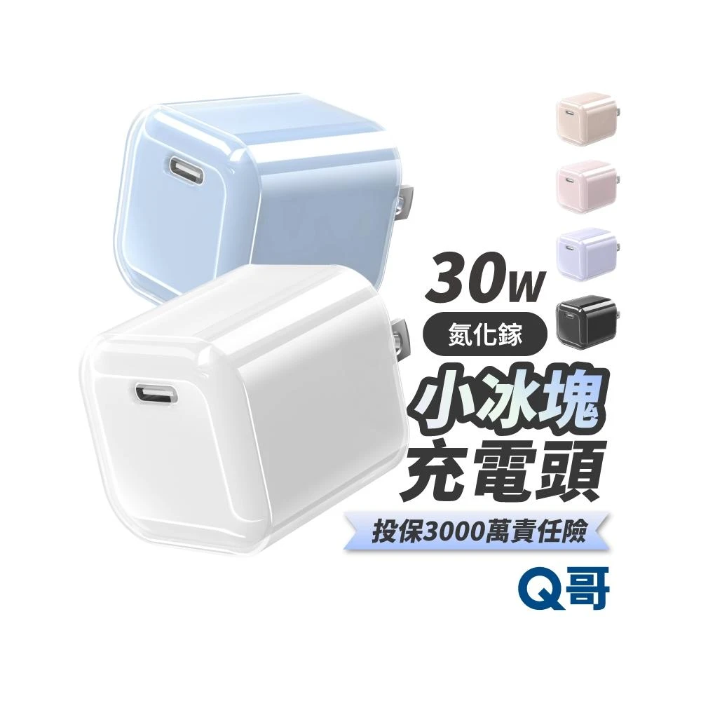 Q哥30W 繽紛小冰塊 氮化鎵 快充頭 TypeC USB-A 迷你 充電頭 PD快充 充電器 豆腐頭 B027