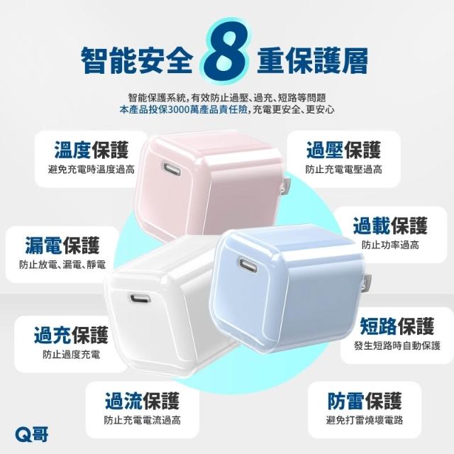 Q哥30W 繽紛小冰塊 氮化鎵 快充頭 TypeC USB-A 迷你 充電頭 PD快充 充電器 豆腐頭 B027