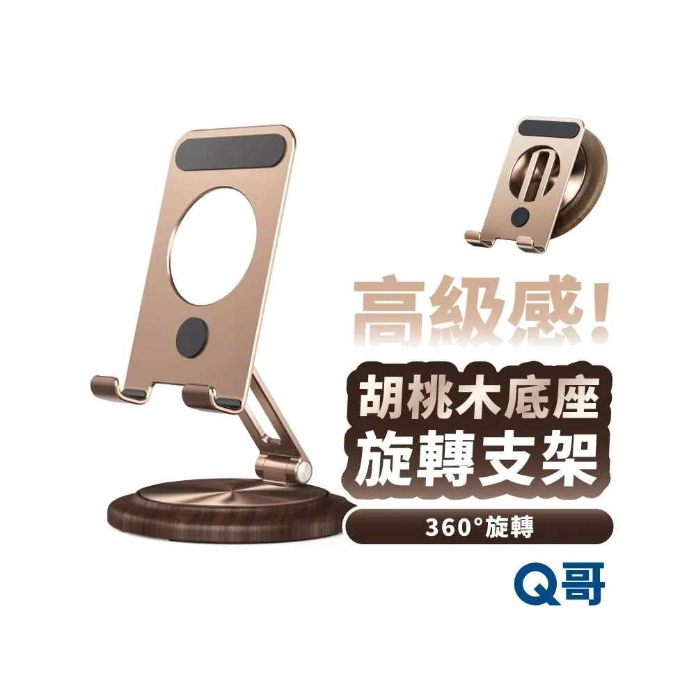 Q哥胡桃木底座 旋轉支架 手機架 折疊支架 桌上支架 手機支架 平板支架 平板架 桌面支架 金屬支架 懶人支架 TI091