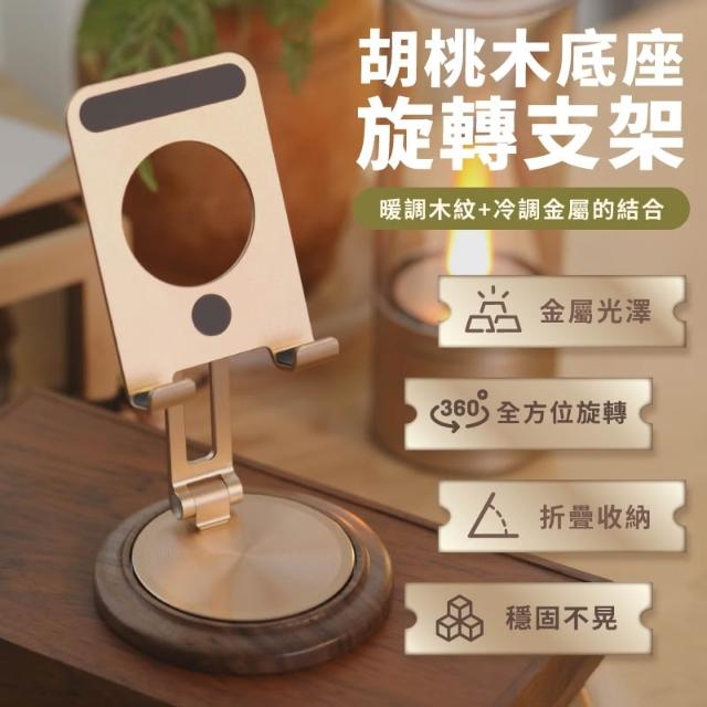 Q哥胡桃木底座 旋轉支架 手機架 折疊支架 桌上支架 手機支架 平板支架 平板架 桌面支架 金屬支架 懶人支架 TI091