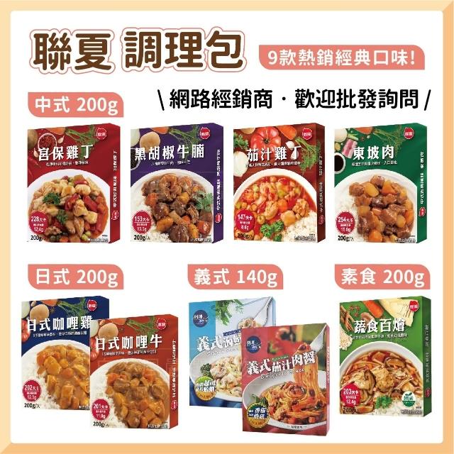 聯夏聯夏調理包 口味任選(日式咖哩牛/咖哩雞/黑胡椒牛腩/東坡肉/宮保雞丁/義式海鮮醬/茄汁肉醬/蔬食百燴/茄汁雞丁)