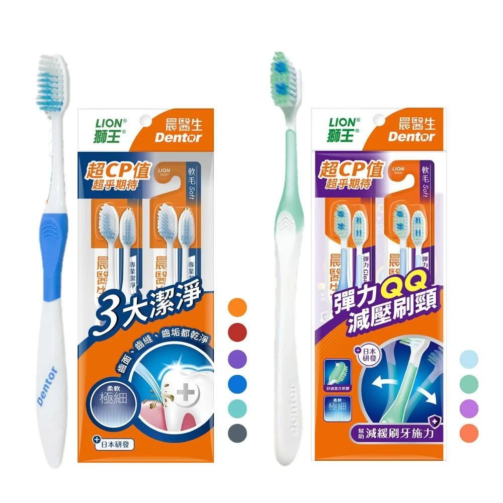 LION 獅王即期品買一送一 獅王 晨醫生系列牙刷 (彈力潔淨/彈力Clear/專業潔淨,共8入)