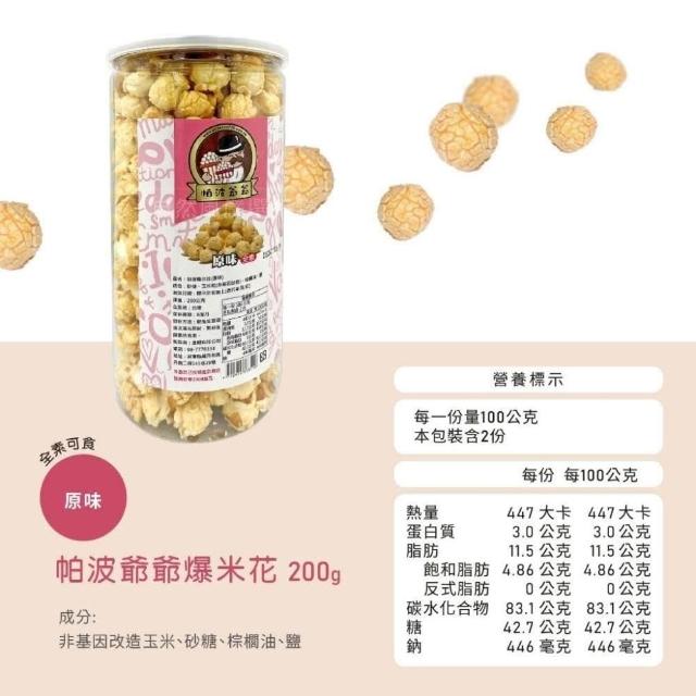 帕波爺爺 超大罐爆米花 200g(原味/焦糖/巧克力/起司)