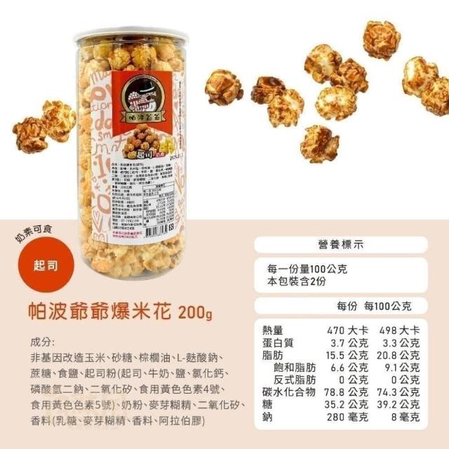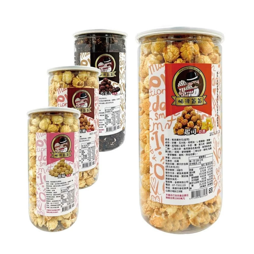 帕波爺爺 超大罐爆米花 200g(原味/焦糖/巧克力/起司)