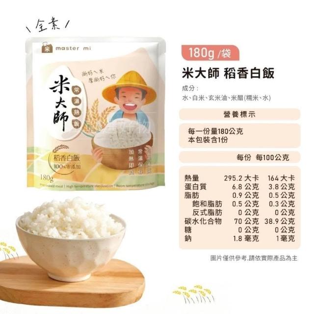 米大師常溫熟飯 即食米飯 常溫保存 180g/包(紅藜纖穀飯/池上香米飯/池上糙穀飯/稻香白飯)