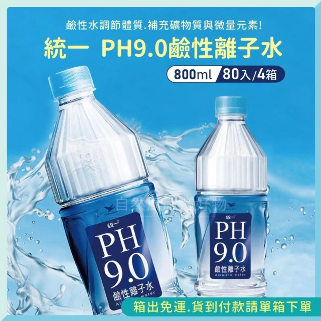 統一(下殺4箱免運組) PH9.0鹼性離子水 800mlx80入(免運,共4箱,效期:2026.04.13後)