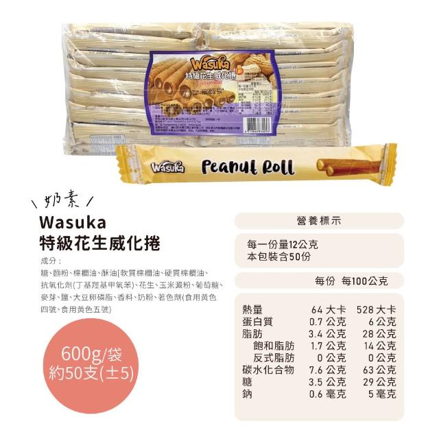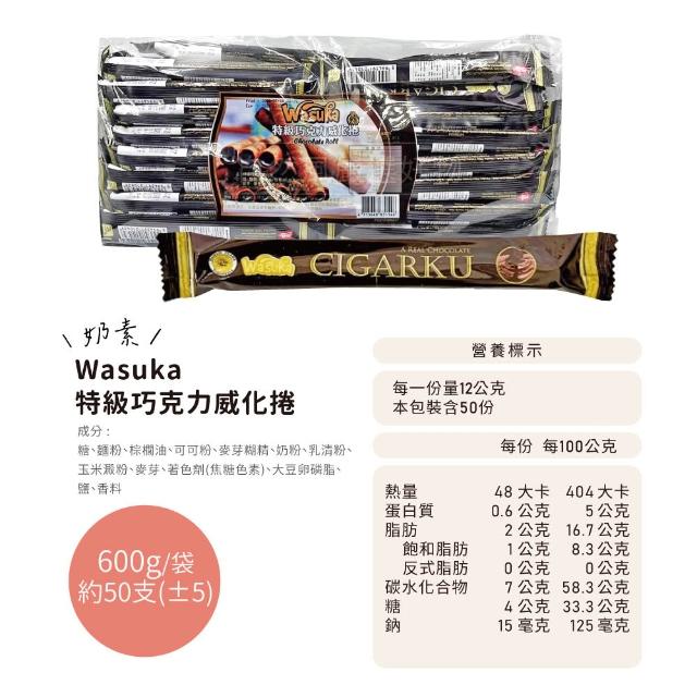 Wasuka特級威化捲 600g/包 口味任選(巧克力/牛奶/花生/起司/咖啡)