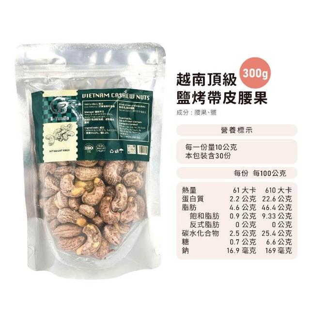 越南頂級鹽烤帶皮腰果300g (最新效期)