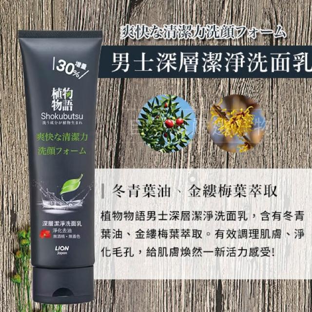 LION 獅王植物物語洗面乳 130g(男士深層潔淨/淨膚調理/浸潤溫和)