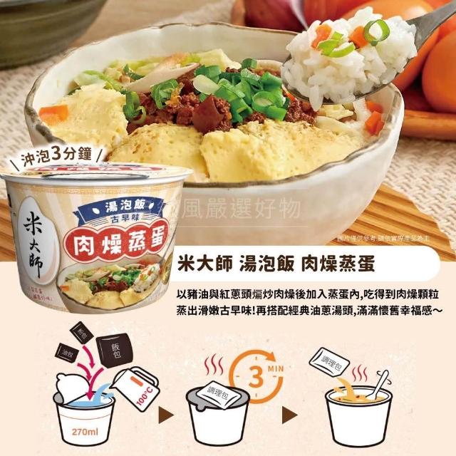 米大師(箱出免運) 湯泡飯 茶泡飯 常溫保存 6碗組(鮮蝦蒸蛋/肉燥蒸蛋/麻油雞/川香麻辣牛肉/菠菜蛋花/蕃茄羅宋/紅蔥肉燥)