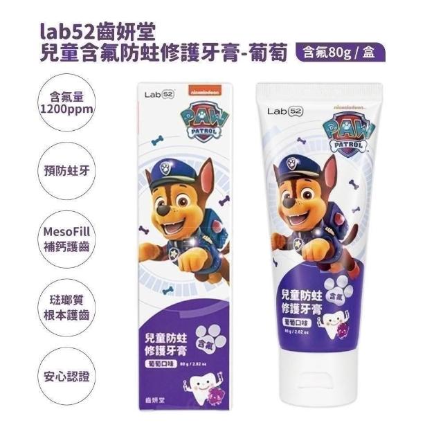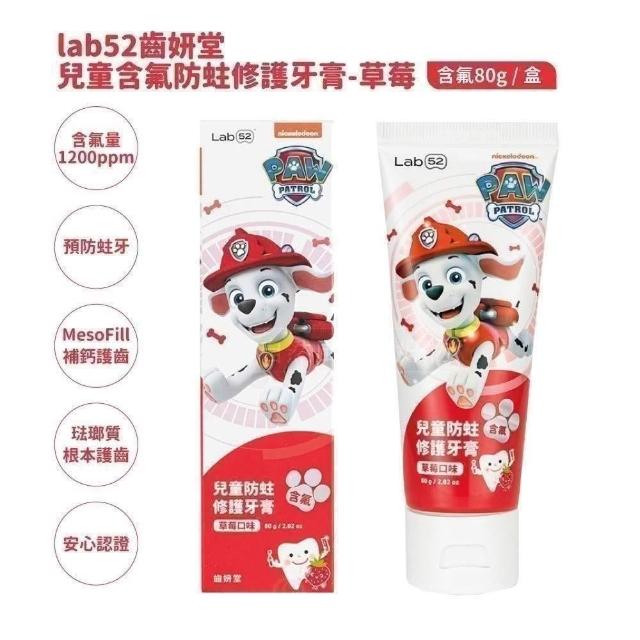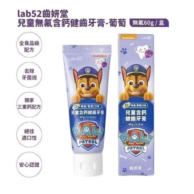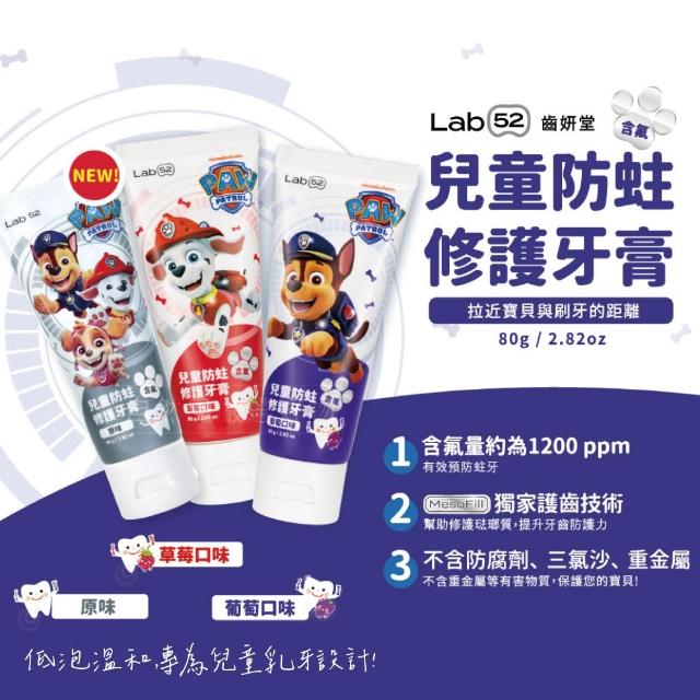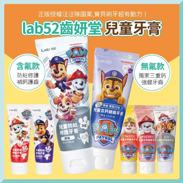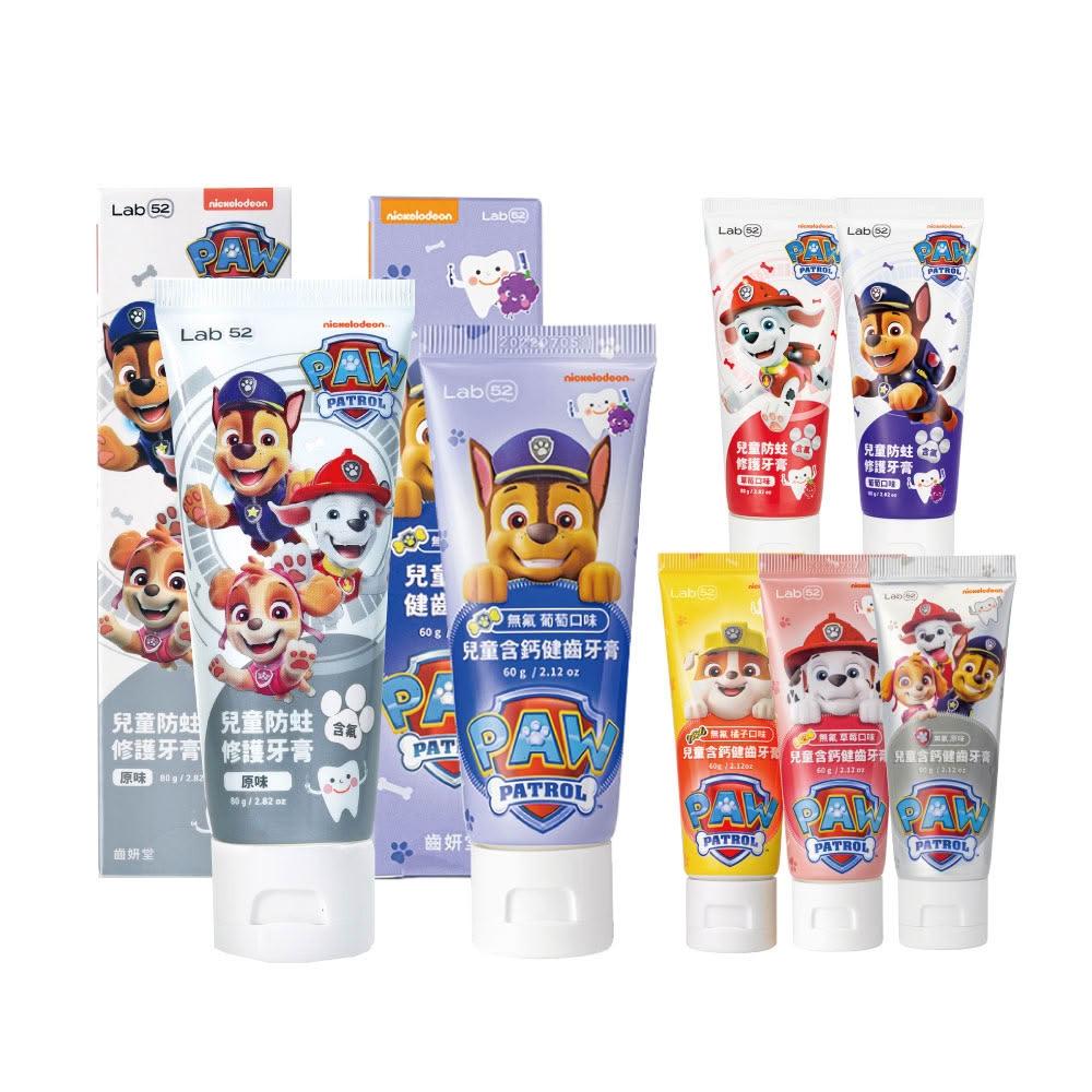 Lab52 齒妍堂汪汪隊兒童含氟防蛀修護牙膏80g(草莓/原味/葡萄) 兒童無氟含鈣健齒牙膏60g(草莓/原味/葡萄/橘子)