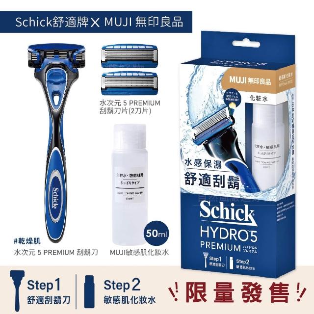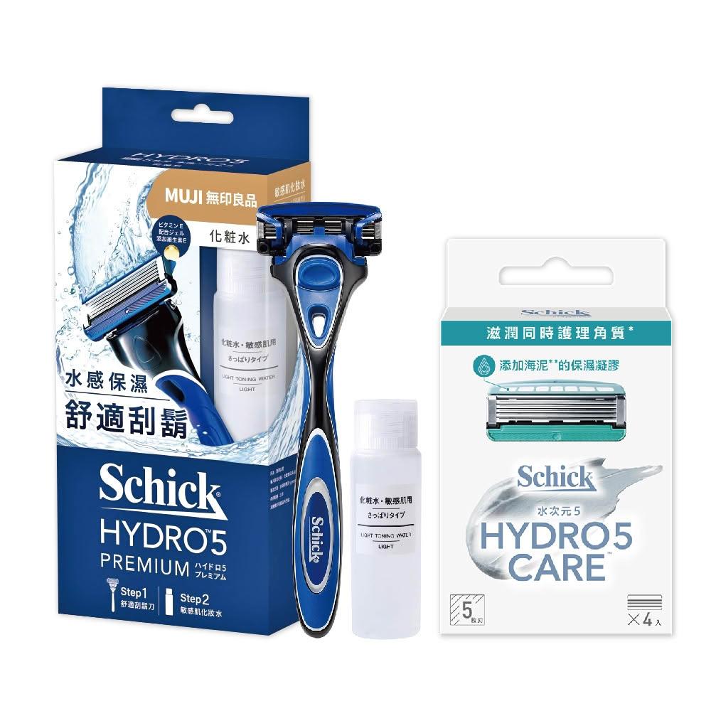 Schick 舒適牌水次元5 Premiun刮鬍刀超值組合包(1分架+2刀頭)/組 刮鬍刀頭【海泥配方】4入/盒