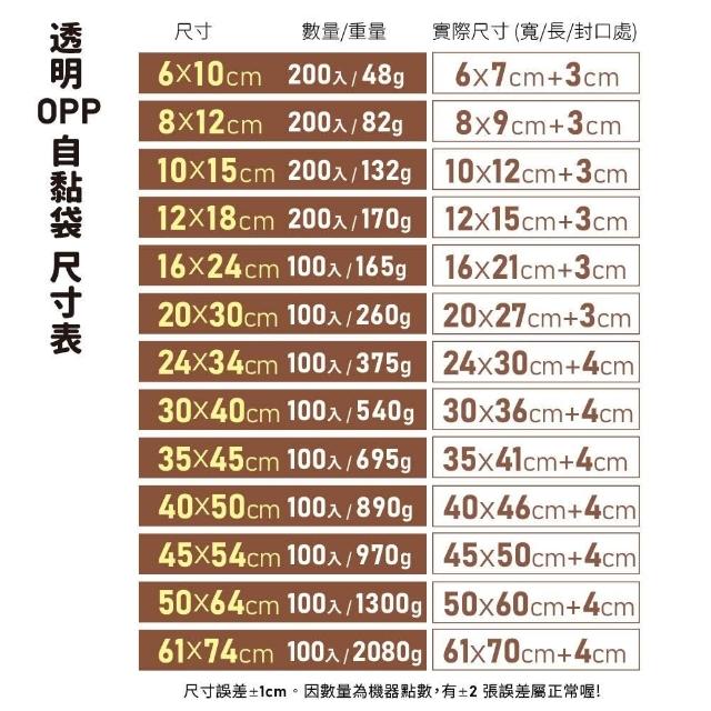 OPP自黏袋 10x15/12x18/8x12/6x10CM (200入/單包)