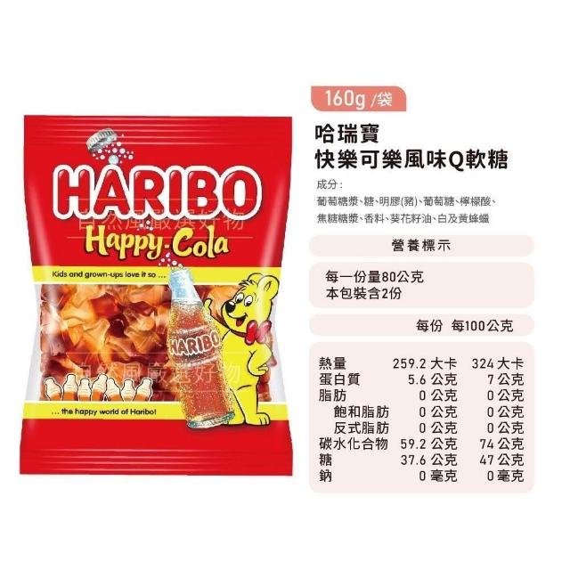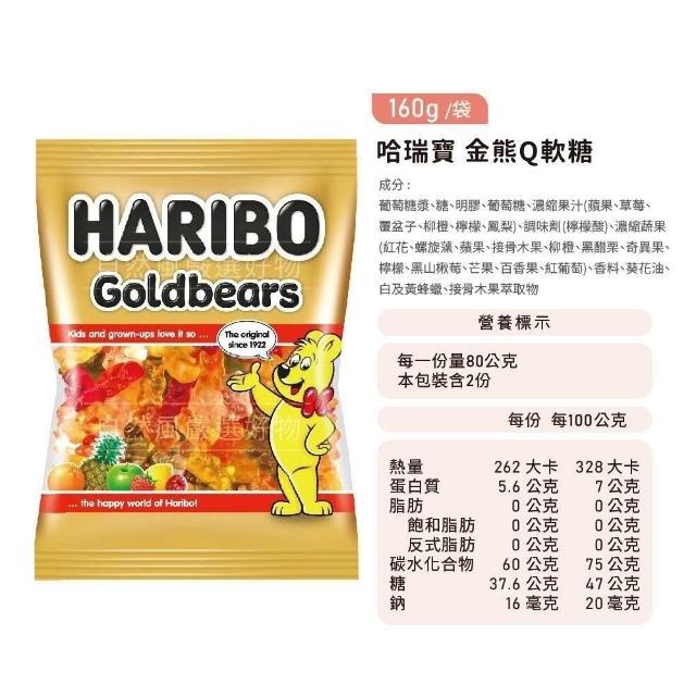 HARIBO 哈瑞寶即期品 買一送一 金熊/明星/可樂/酸甜蟲蟲Q軟糖160g 共二包 效期:202602後